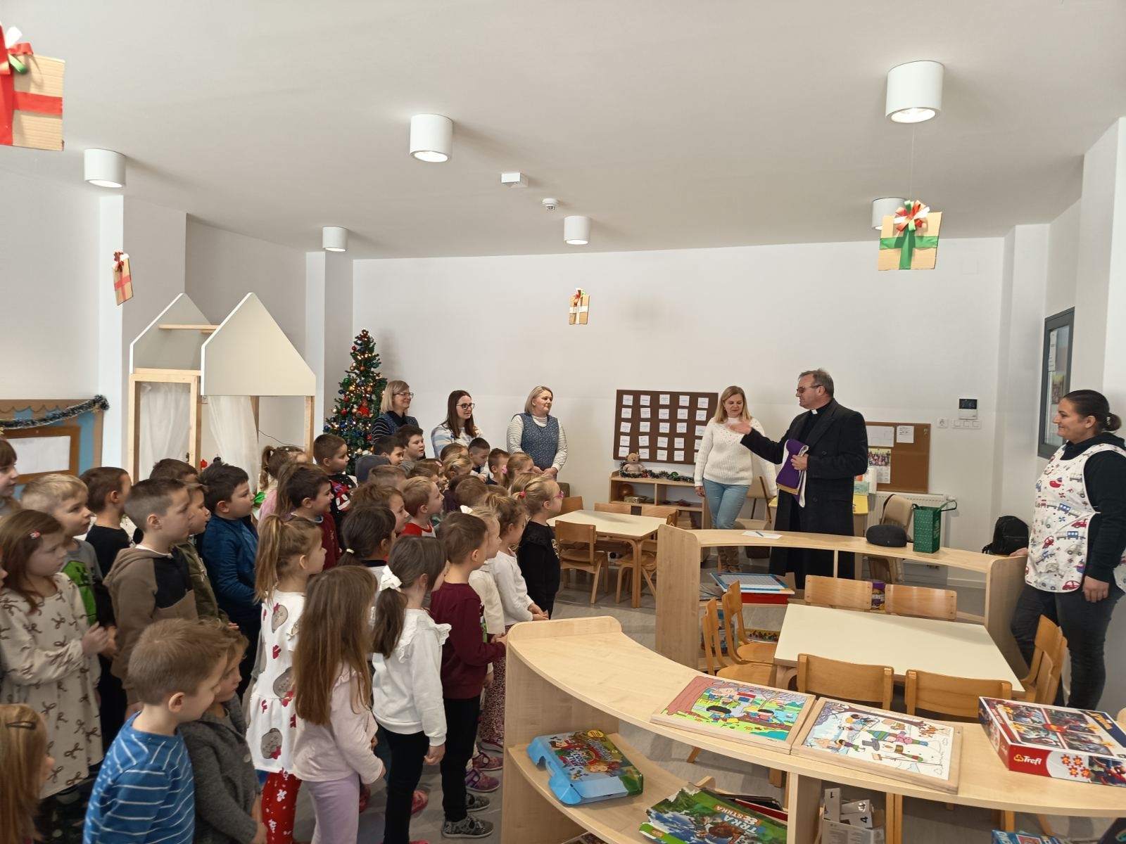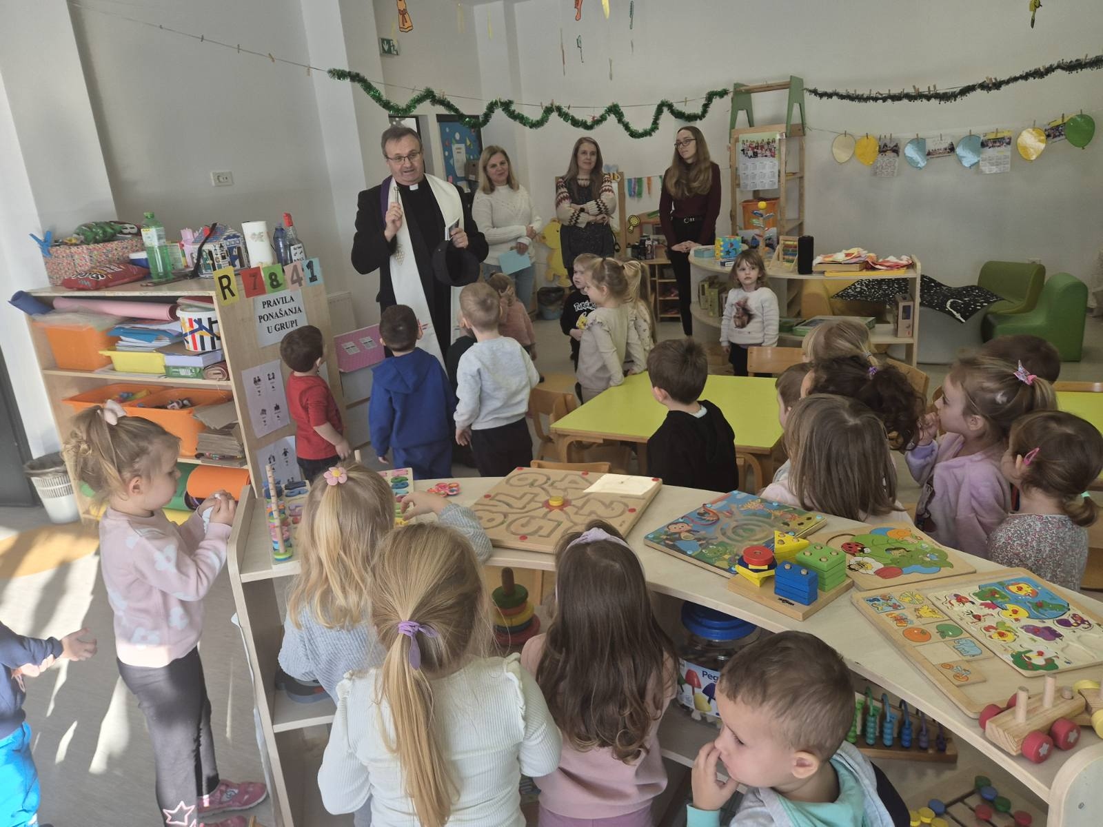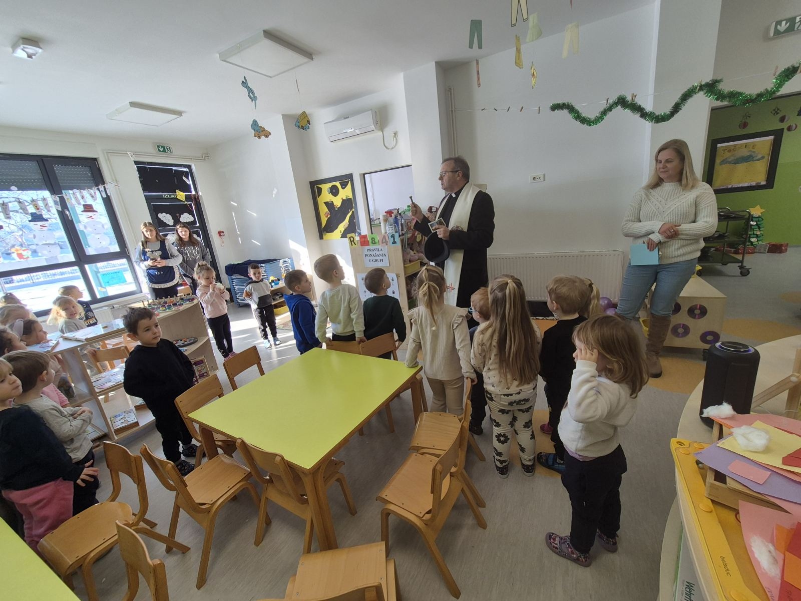 Tijekom posjeta, župnik je s djecom razgovarao na njima razumljiv i blizak način, potičući ih na lijepo ponašanje prema roditeljima, odgajateljima i prijateljima. Djeca su aktivno sudjelovala, odgovarala na pitanja i pokazala veliko zanimanje za teme o prijateljstvu i uvažavanju drugih.