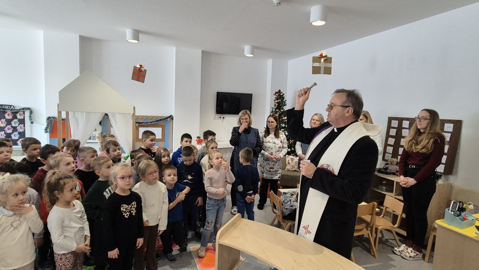 Tijekom posjeta, župnik je s djecom razgovarao na njima razumljiv i blizak način, potičući ih na lijepo ponašanje prema roditeljima, odgajateljima i prijateljima. Djeca su aktivno sudjelovala, odgovarala na pitanja i pokazala veliko zanimanje za teme o prijateljstvu i uvažavanju drugih.