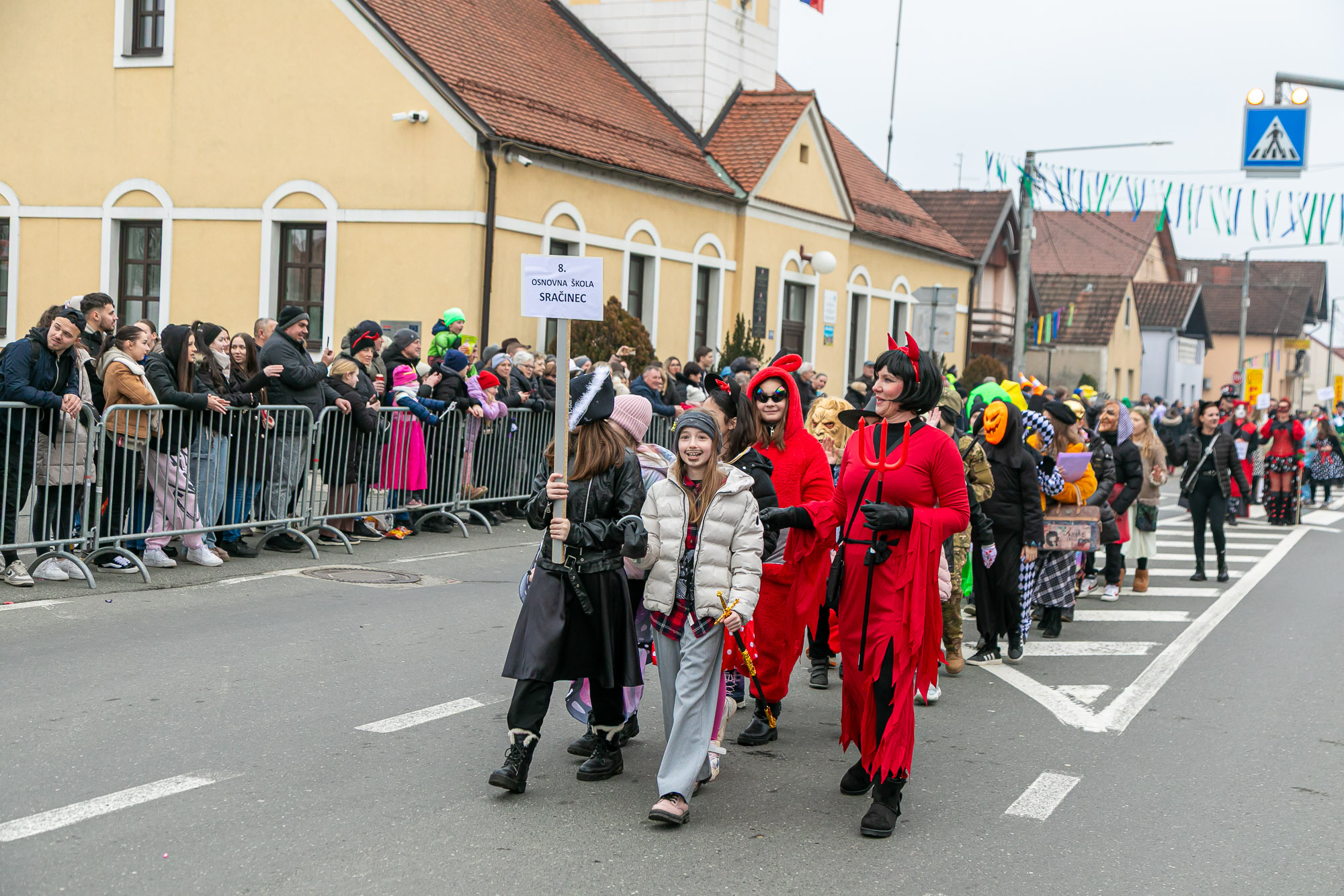 Središnji događaj fašničkog vikenda bila je velika karnevalska povorka, održana u subotu, u kojoj je sudjelovalo ukupno 56 karnevalskih skupina s oko 1.600 maskiranih sudionika iz Hrvatske i inozemstva. Šarolika i razigrana povorka prošla je središtem Sračinca, privukavši brojne posjetitelje i stvarajući prepoznatljivu fašničku atmosferu ispunjenu glazbom, humorom, satiričnim porukama i bogatom kreativnošću sudionika.