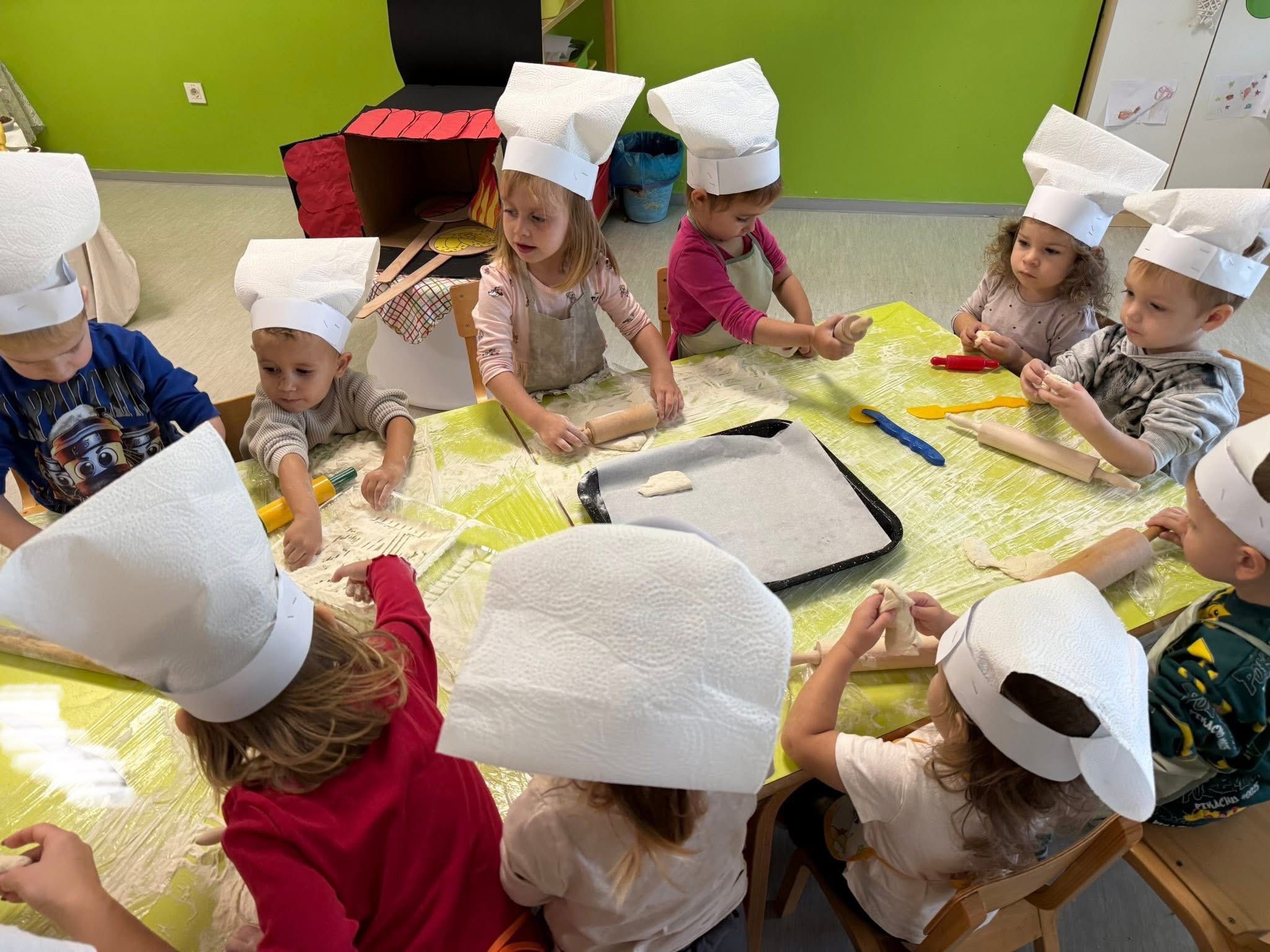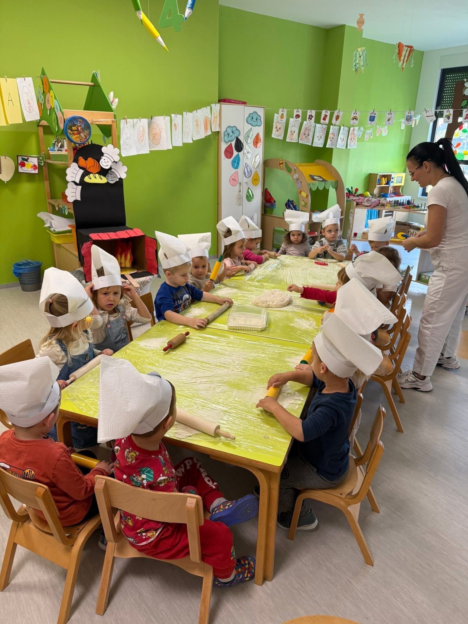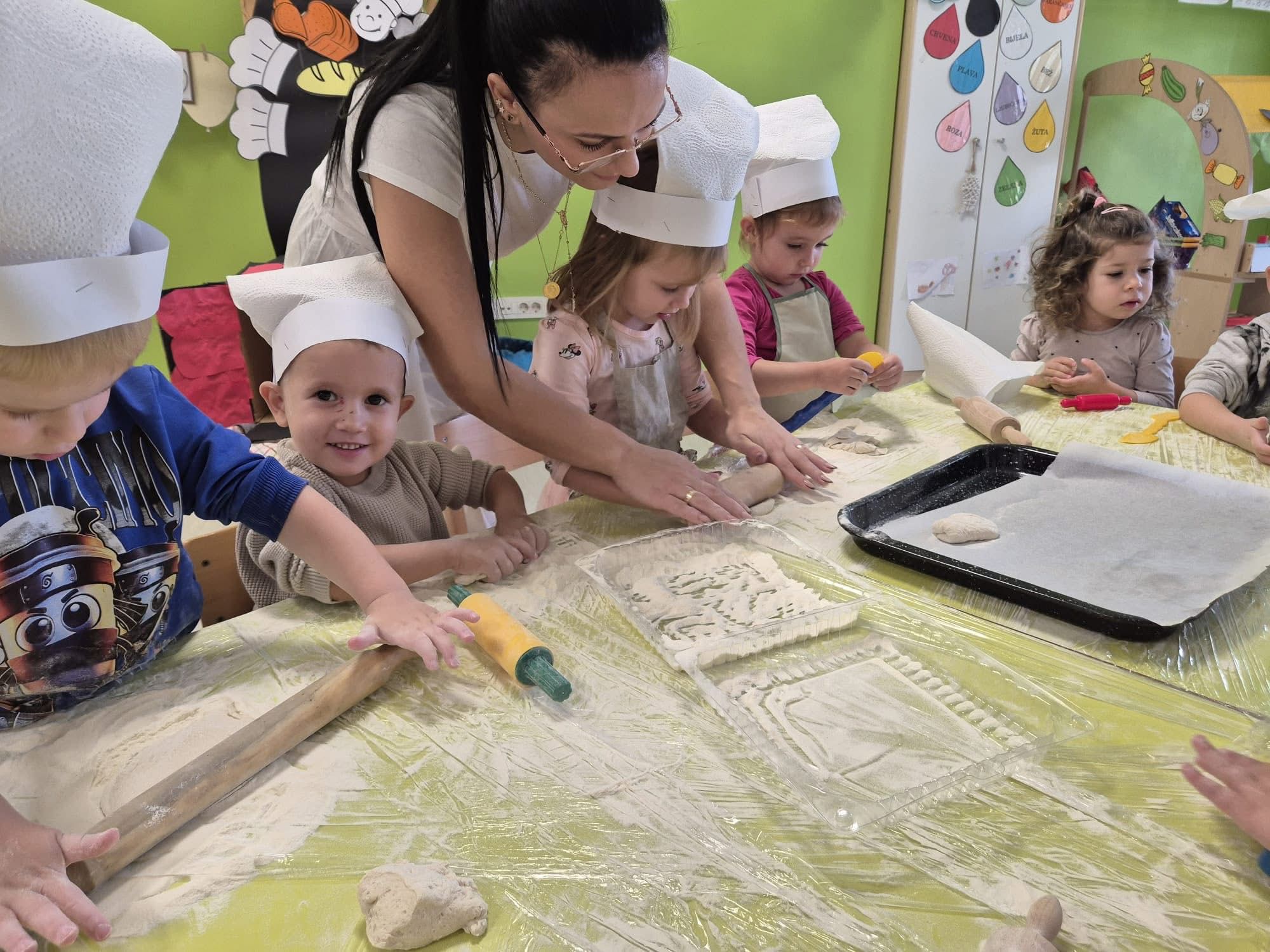 Gospođa Robertina djeci je pokazala kako se priprema i peče tijesto te otkrila male tajne nastanka mirisnih klipića i finih pereca. Djeca su s oduševljenjem promatrala, mijesila i oblikovala svoje male pekarske proizvode, a kasnije su cijelim vrtićem zamirisali svježe pečeni proizvodi.