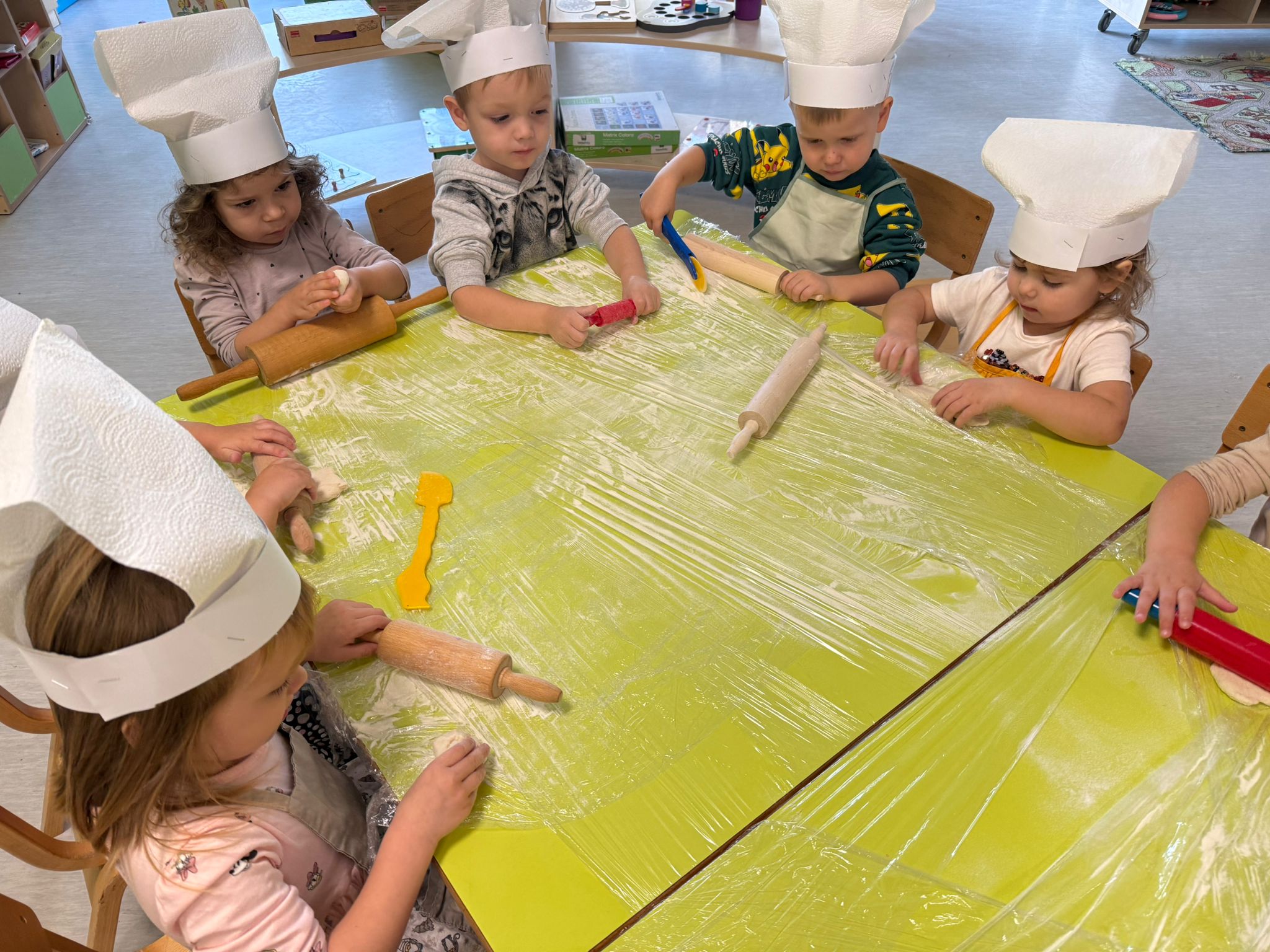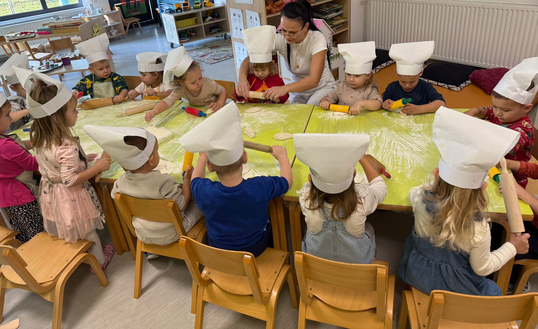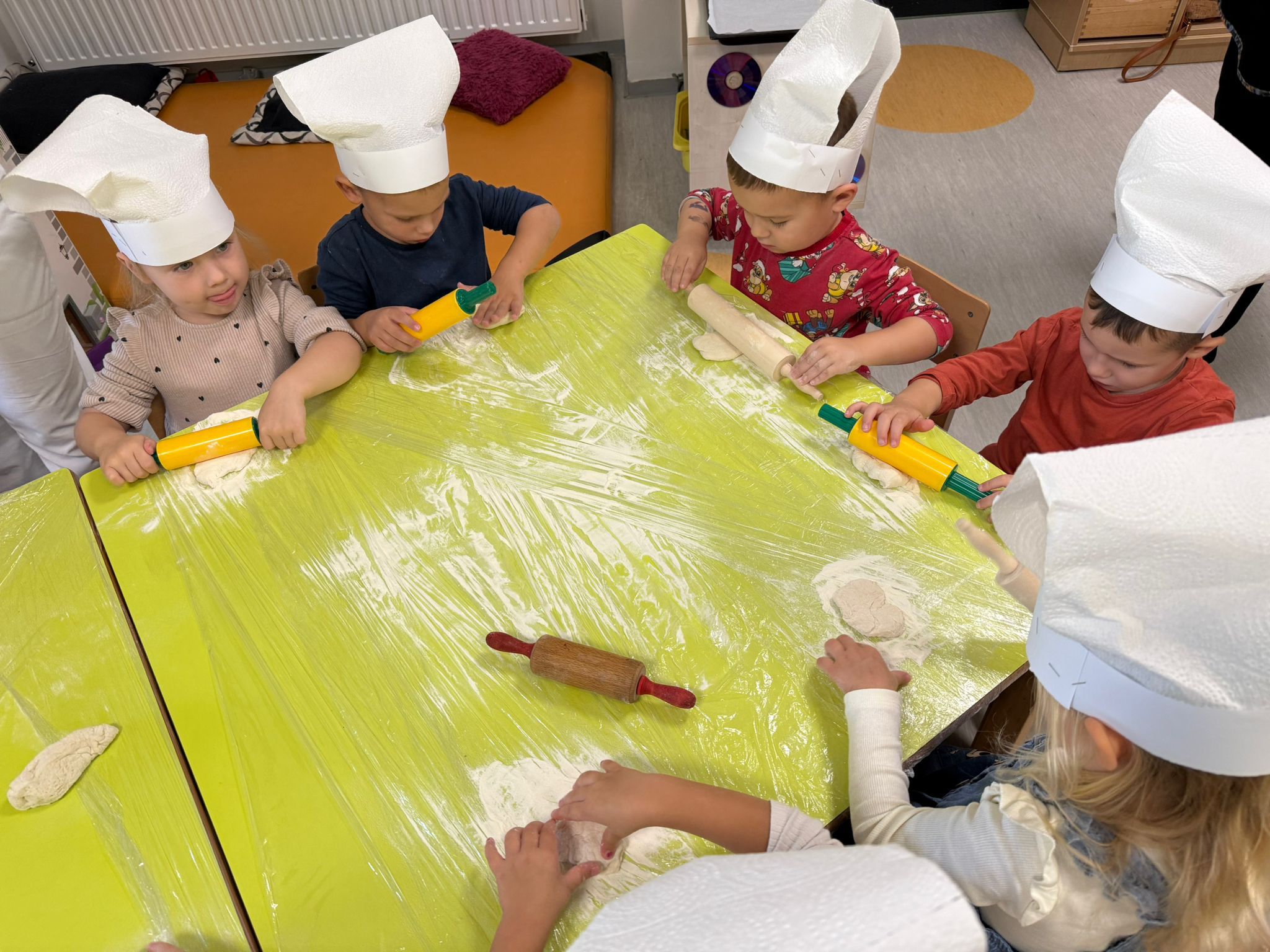Gospođa Robertina djeci je pokazala kako se priprema i peče tijesto te otkrila male tajne nastanka mirisnih klipića i finih pereca. Djeca su s oduševljenjem promatrala, mijesila i oblikovala svoje male pekarske proizvode, a kasnije su cijelim vrtićem zamirisali svježe pečeni proizvodi.