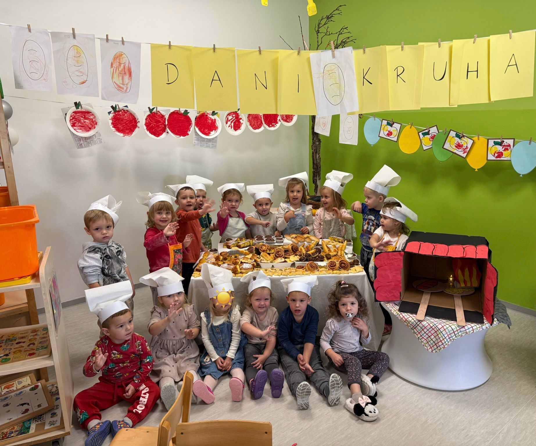 Gospođa Robertina djeci je pokazala kako se priprema i peče tijesto te otkrila male tajne nastanka mirisnih klipića i finih pereca. Djeca su s oduševljenjem promatrala, mijesila i oblikovala svoje male pekarske proizvode, a kasnije su cijelim vrtićem zamirisali svježe pečeni proizvodi.