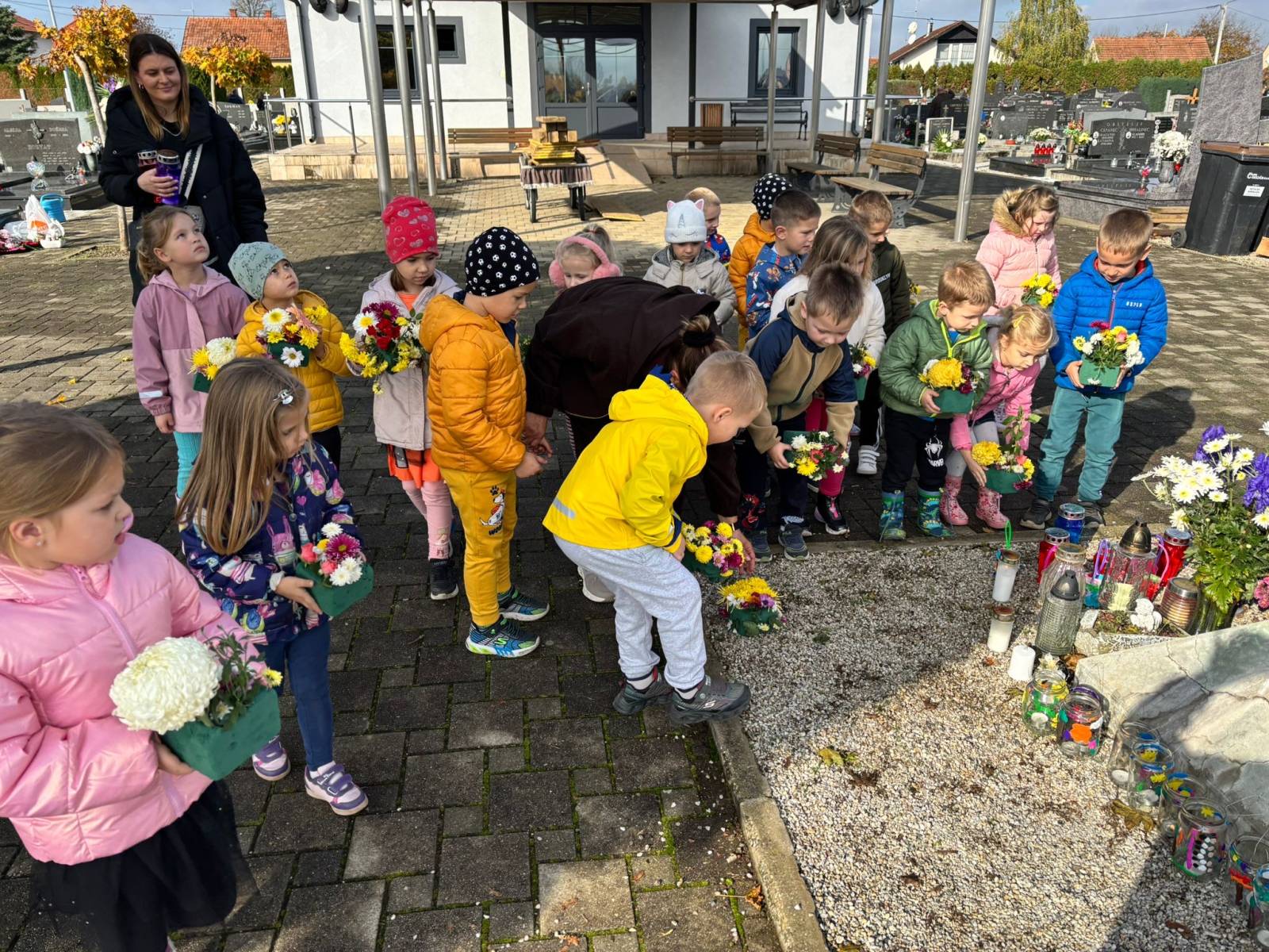 Djeca su izradila cvjetne aranžmane, koje su potom odnijeli na groblje u Sračincu. Na taj su način, u duhu zajedništva i poštovanja, odale počast svima onima kojih više nema, učeći vrijednostima sjećanja, zahvalnosti i ljubavi.