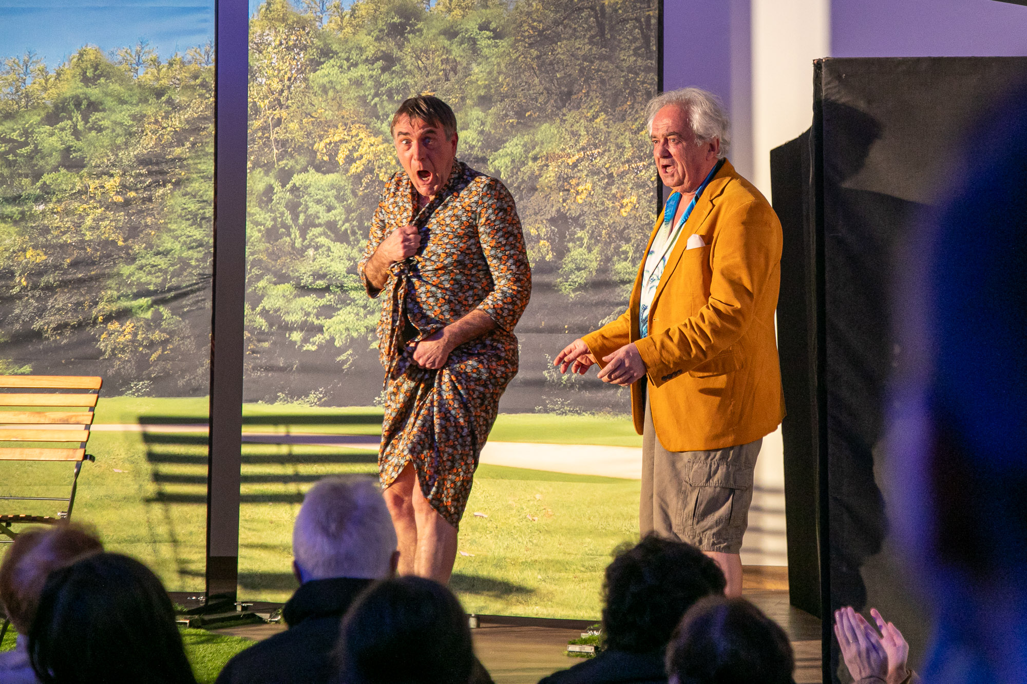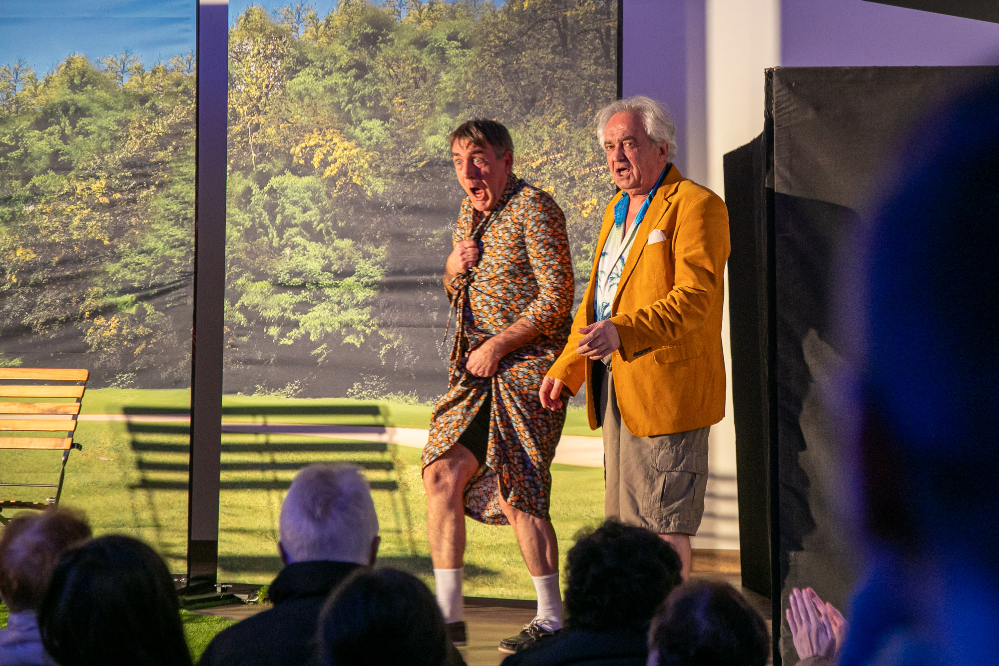 Od prvih scena bilo je jasno da je riječ o predstavi koja pogađa ravno u sridu. Duhoviti dijalozi i prepoznatljive situacije izazvali su glasno odobravanje raspoložene publike. Odlična glumačka ekipa, koju je sačinjavao trio vrhunskih glumaca – Ljubomir Kerekeš, Darko Janeš i Goran Koši, poveli su nas na put u starost i dom umirovljenika u kojem žive obični penzići s malo pomaknutim pogledom na svijet.